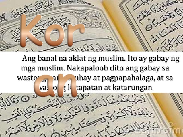 Ang banal na aklat ng islam. Ang-Banal-na-Aklat-ng-mga-Muslim-857pptx - THE HOLY QURAN In the Name of Allah Most Beneficent Most Merciful PHILOSOPHY OF QURAN u2022 Quru2019an contains Ang-Banal-na-Aklat-ng-mga-Muslim-857pptx - THE HOLY QURAN. Naniniwala ang mga Muslim na ito ang aklat ng patnubay at direksiyon ng sangkatauhan at isinasaalang-alang ang orihinal na tekstong Arabic na salita ng Allah diyos ng sangkatauhan na ipinakita kay Muhammad sa panahon ng dalawamput tatlong. Ang Quran Quran o Koran Arabik.