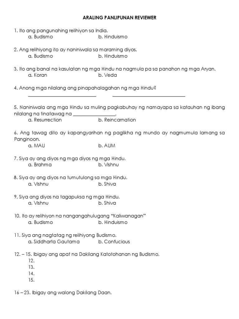 Ang pangunahing kasulatan ng Hinduismo ay ang Vedas itinuturing na pinakamahalaga Upanishadas ang Mahabharata at ang Ramayana. Ang tawag ng mga Hudyo sa Diyos at ang lumikha ng lahat. Exposure of the dead.